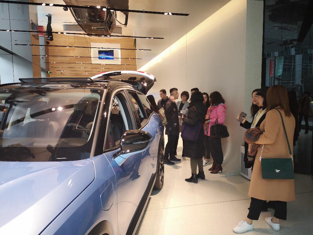兴业太古汇的蔚来汽车展厅集中展览ES8和ES6两种车型,同学们都纷纷打开车门,直接体验和享受着轻盈驾驶的快感,Nomi智能机器人的设计让不少老驾驶员大呼“萌萌哒!”据介绍,这个机器人唤醒率为百分之百,目前已能听懂英文和中文两种语言的设计,是由蔚来与讯飞合作研发而成。