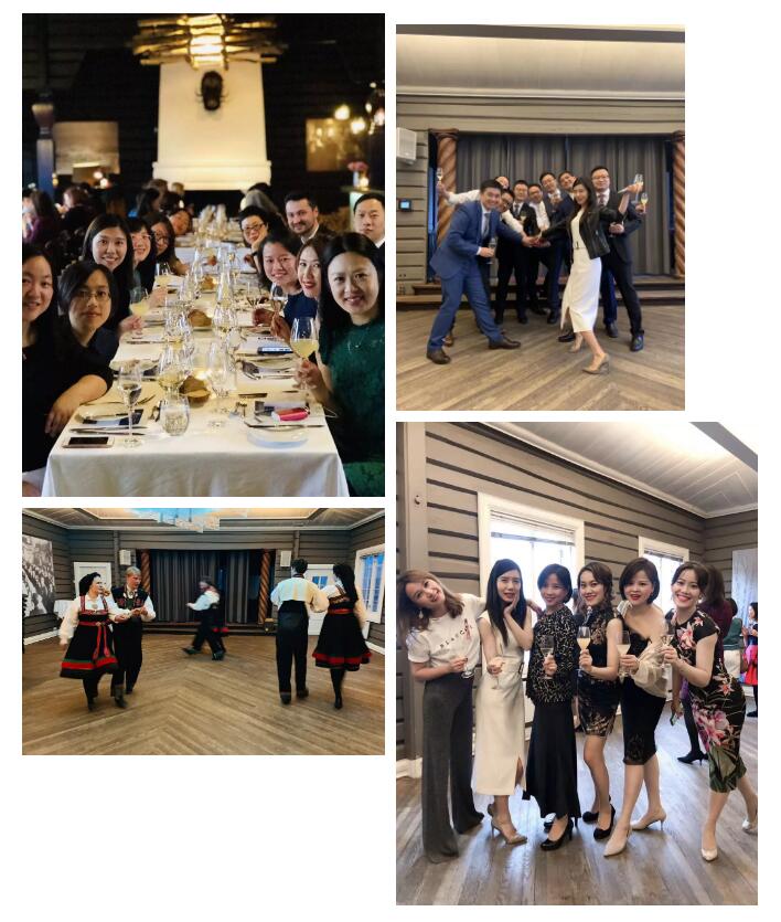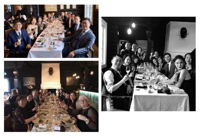 晚上6点,一行人盛装来到了奥斯陆半山的一家米其林餐厅Grefsenkollen。蒙蒙细雨带来的雾气缭绕身旁,仿佛置身于童话中的仙境。在这个充满挪威风情的餐厅中,大家频频举杯畅饮,共话未来。
