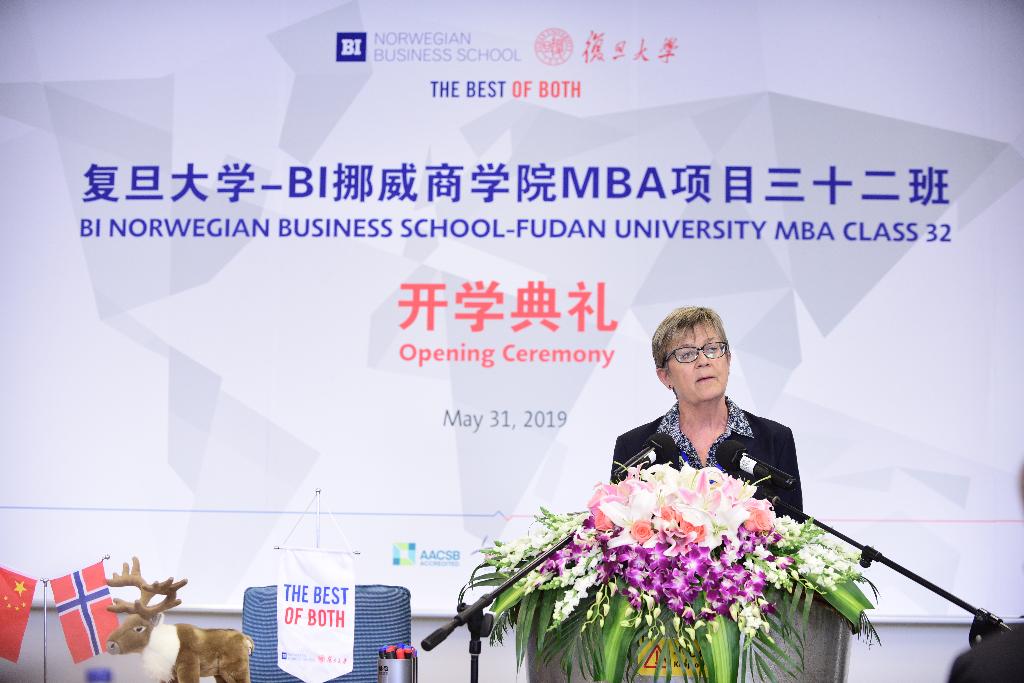 2019年5月31日,复旦-BI(挪威)MBA项目32班开学典礼在复旦大学管理学院圆满举行。挪威王国驻上海总领事馆总领事Kristin Iglum、BI挪威商学院高级管理教育项目院长Jan Ketil Arnulf、复旦大学外事处副处长唐文卿、复旦大学管理学院副院长殷志文、复旦-BI(挪威)MBA项目学术院长Heidi Wiig以及项目教授与老生代表出席了本次典礼。