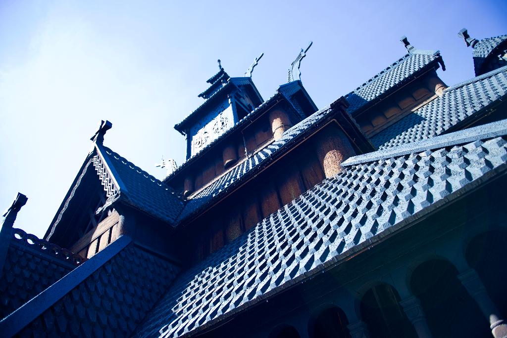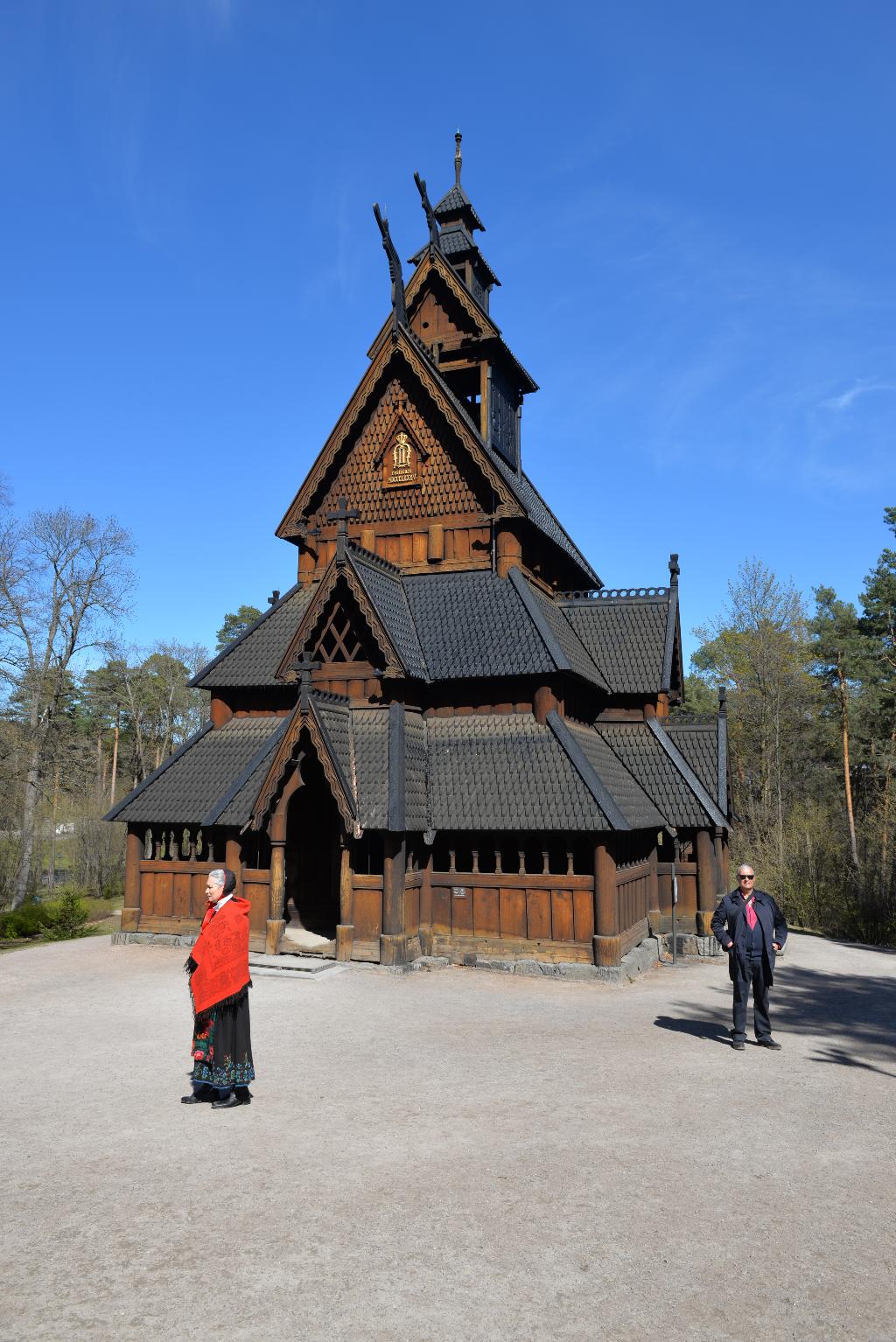 在这里,MBA24班的小伙伴们漫游在各式各样的建筑中,流连忘返。参观的过程中不禁感叹古时和复原时能工巧匠们的精湛技艺。其镇馆之宝是1200年前建造的一座木造史塔夫(Stave)式教堂,整座建筑恢弘大气,听说它专供国王使用。这座教堂是整个民俗博物馆中最具特色的,其结构是由直立的木板所架起,屋顶和门楣上的雕饰与纹路,是传统北欧建筑中较为少见的样式。它能够经受住这么多年的风吹雨打,依然屹立不倒,着实令人赞叹。