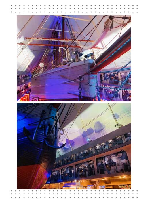 复旦-BI(挪威)MBA项目 28班的同学们在这里上课和参观时,最让他们震撼的就是整个博物馆内就是一艘大船,登船了解当年船员们生活的经历、船的构造,吃极地探险者的食(鹿)物(肉),感受一把物质极度贫乏但精神极度丰富的体验。博物馆里有不少游戏,其中有个负重游戏让游客体验能负重多少并行走,多数人几乎拉不动什么重物,让人不禁佩服当时挪威的科考队员,是如何在艰苦简陋的情况下进行科考的。
