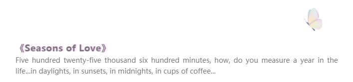 此时,《Seasons of Love》的旋律又回响在我的耳旁,“如何衡量一生的价值,以掌握的真理,以哭泣的次数…..趁现在放声高歌,以爱衡量,铭记此爱,这是爱的季节……”