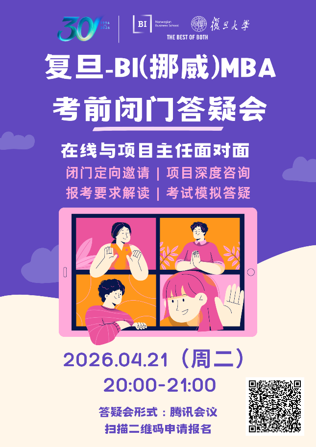 考前焦虑一次清零!复旦-BI(挪威)MBA主任线上闭门答疑会,等你来问!