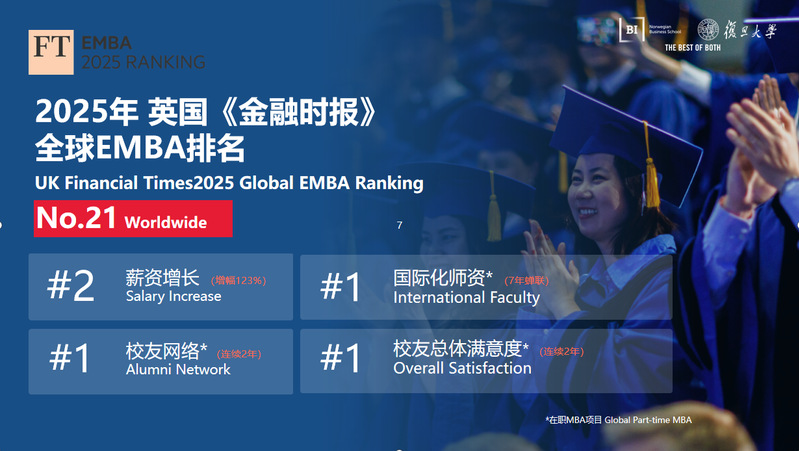 2025年10月13日,英国《金融时报》(FT)发布2025年度全球EMBA项目排名。复旦大学管理学院创造历史新纪录,...