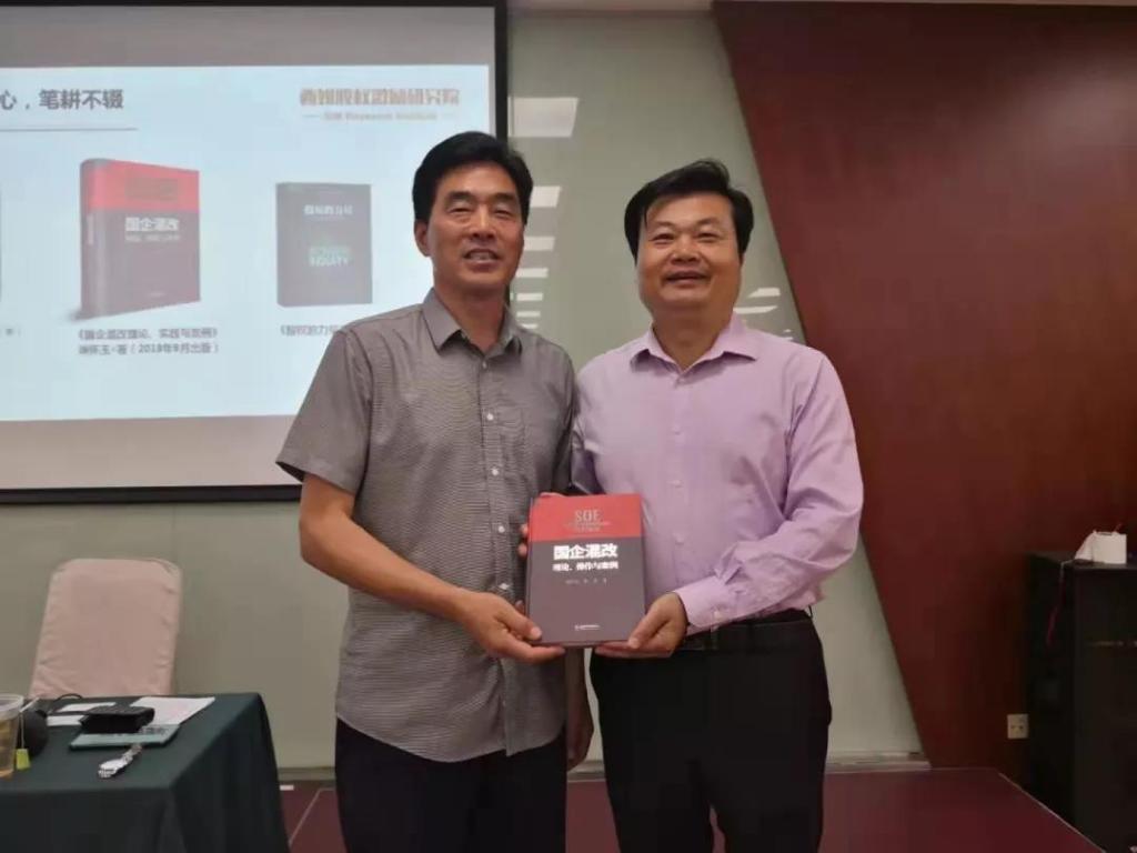 ▲西姆股权激励研究院院长、西姆国企改革研究中心主任徐怀玉向李楚源董事长赠书