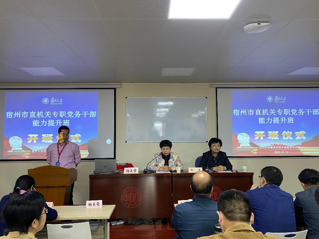 为深入贯彻落实习近平总书记在中央和国家机关党的建设工作会议上的讲话精神和视察安徽重要讲话精神,夯实“不忘初心、牢记使命”主题教育果,进一步提高市直机关专职党务干部理论素养与政策水平,提高抓党建促发展的能力,11月11日至11月15日市直机关专职党务干部能力提升班在上海复旦大学开班。市直各单位机关党委书记、直属党总支(党支部)书记或专职副书记共计69人参加本次培训。市直机关工委杨美荣书记和复旦大学管理学院干部教育培训中心黄莹主任出席开班仪式并讲话。