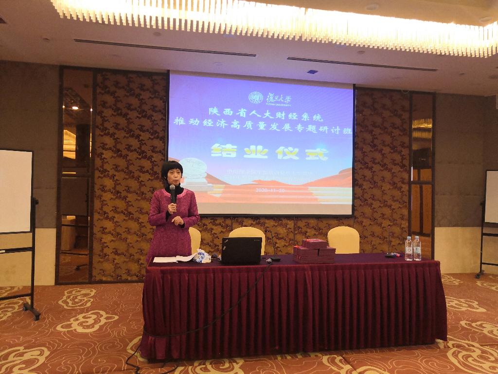 陕西省人大常委会财经工委副主任卫丽红在结业仪式上讲话