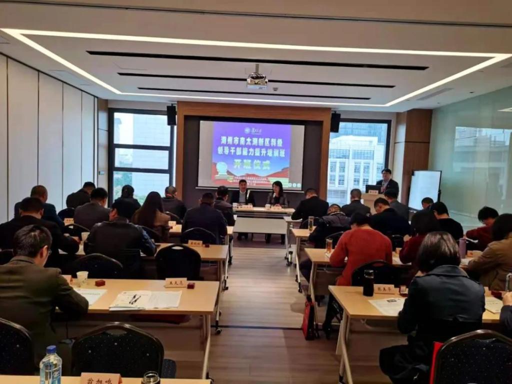 为进一步加强新区科级领导干部队伍建设,提高新区科级领导干部政治素养、综合能力和业务水平,助推新区经济社会高质量发展,锻造过硬的南太湖开路先锋队伍,11月23日至27日,由新区党工委举办的湖州南太湖新区科级领导干部能力提升培训班在复旦大学管理学院开班,来自新区委机关、企事业单位、派驻分局和街道共计40名学员参加培训。