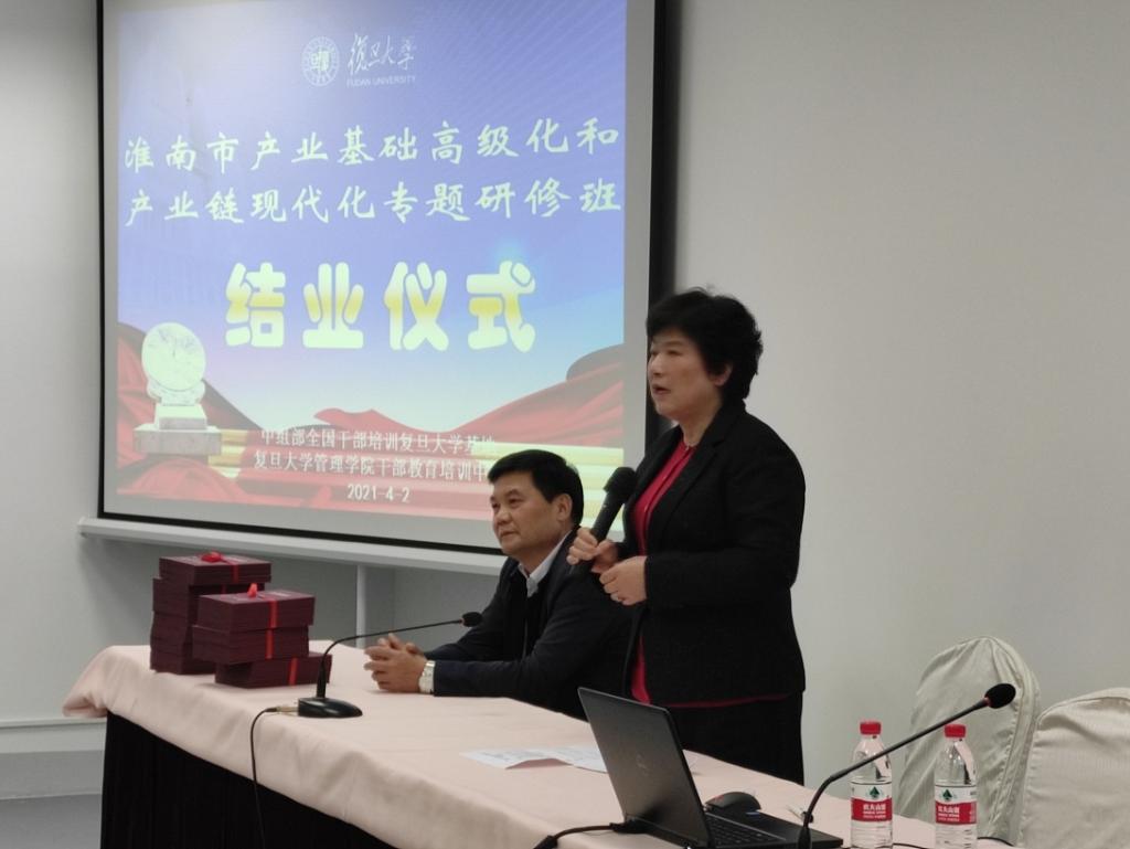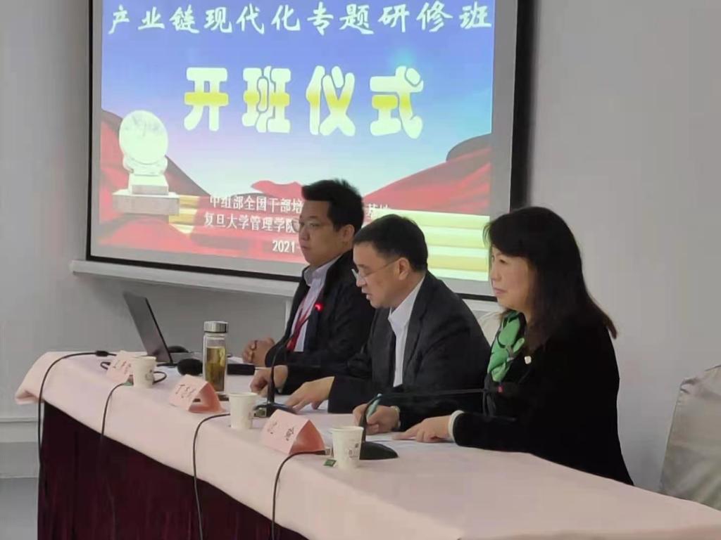 3月28日淮南市产业基础高级化和产业链现代化专题研修班在复旦大学开班。淮南市市经信局党委书记、局长、二级巡视员丁志武同志参加开班式并讲话。淮南市企业家及经信局领导干部80余名学员参加开班式。