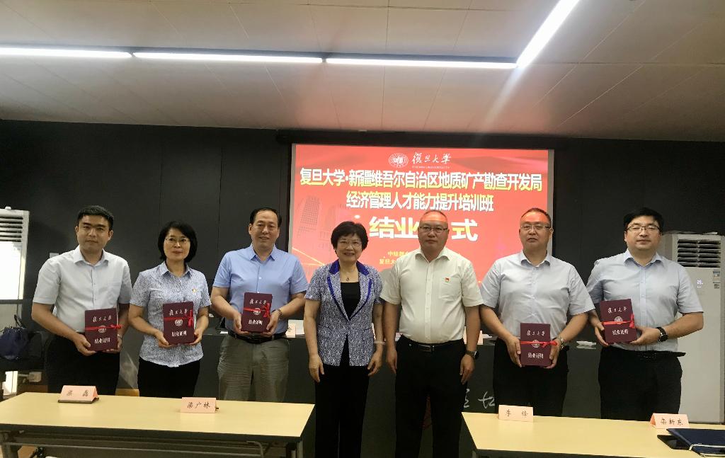 2021年6月25日,新疆地矿局经济管理人才培训班结业仪式在复旦大学管理学院隆重举行。中组部全国干部培训复旦大学基地,复旦大学管理学院干部教育培训中心主任黄莹出席结业仪式并为学员颁发结业证书。经过近一个月的精心培养,50位学员顺利完成全部培训课程,至此,新疆地矿局第二期复旦大学经济管理专题培训圆满结束。