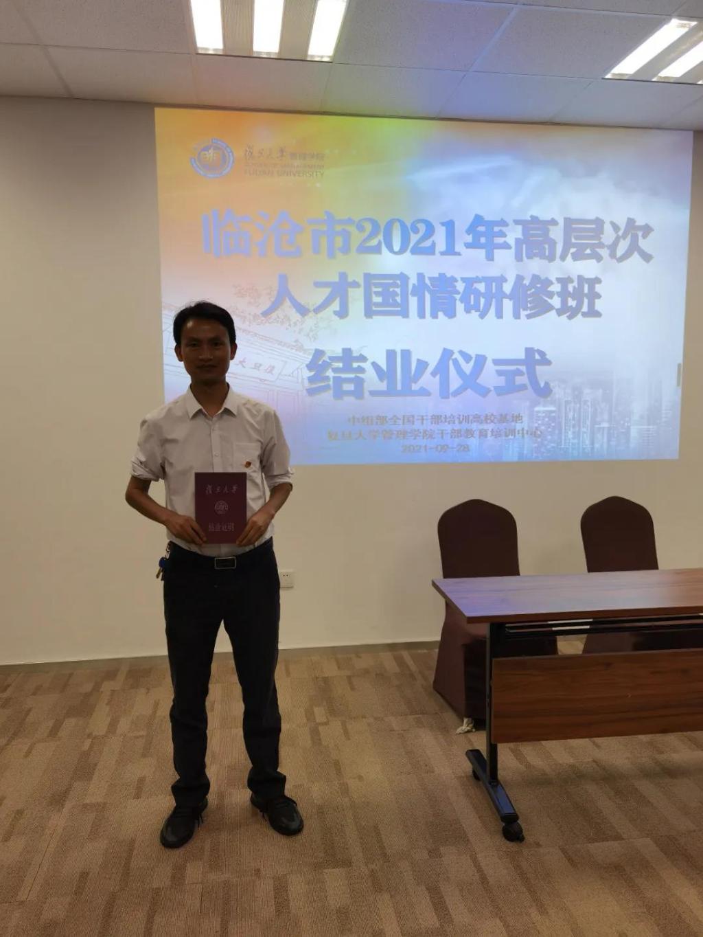 2021年9月23日至29日,我有幸参加了“复旦大学•临沧市2021年高层次人才国情研修班”的学习,非常感谢临沧市委组织部、凤庆县委组织部、县教体局、学校提供的平台,让我得到了学习和进步的机会!