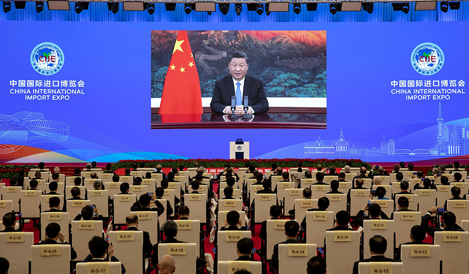 11月4日晚,国家主席习近平以视频方式出席第四届中国国际进口博览会开幕式并发表题为《让开放的春风温暖世界》的主旨演讲。