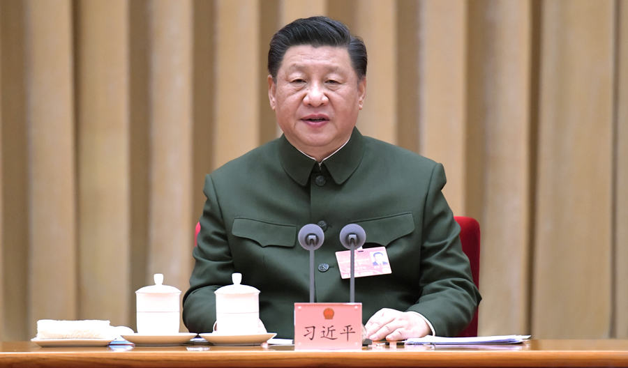3月7日下午,中共中央总书记、国家主席、中央军委主席习近平出席十三届全国人大五次会议解放军和武警部队代表团全体会议并发表重要讲话。