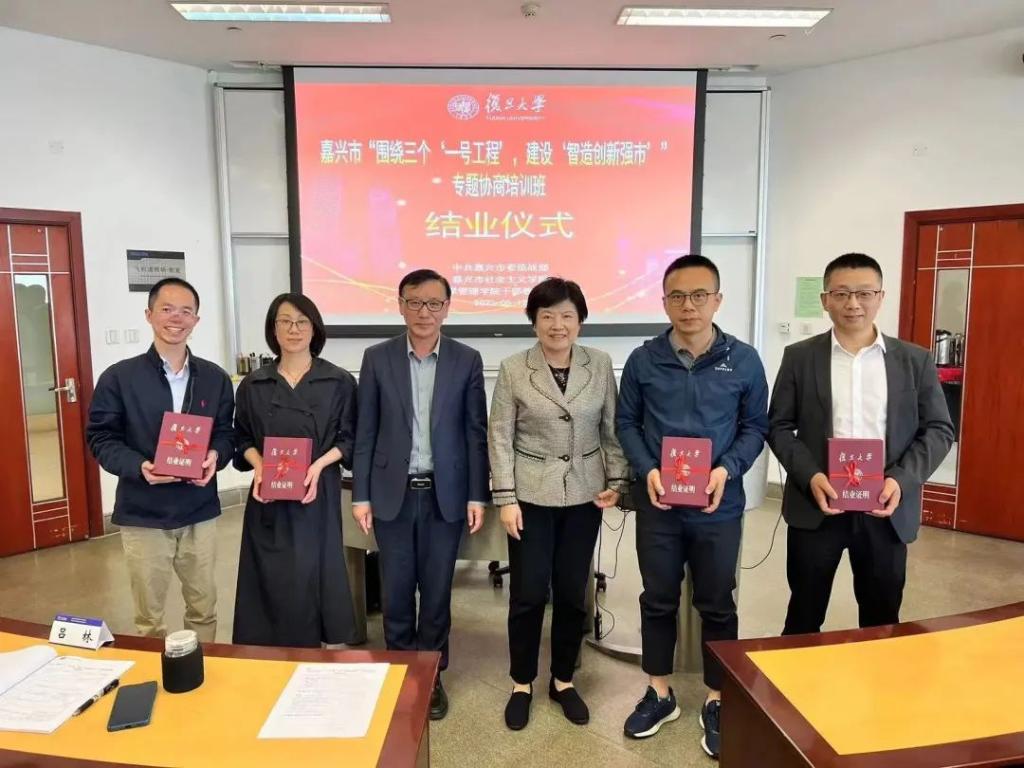 5月12日,嘉兴市“围绕三个‘一号工程’,建设‘智造创新强市’”专题协商培训班在复旦大学举行结业仪式。浙江红船干部学院副院长、嘉兴市社会主义学院副院长徐连林,复旦大学管理学院干部教育培训中心主任黄莹参加。