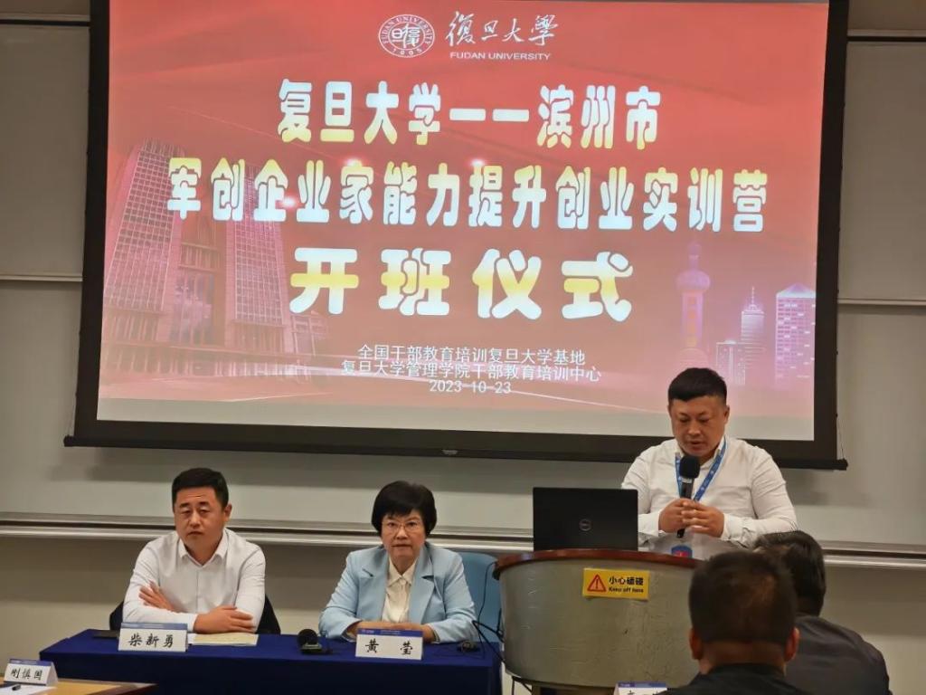 滨州市退役军人事务局党组成员、副局长柴新勇出席开班仪式并作动员讲话,复旦大学管理学院干部教育培训中心主任黄莹发表致辞,学员代表刚慎国做表态发言。