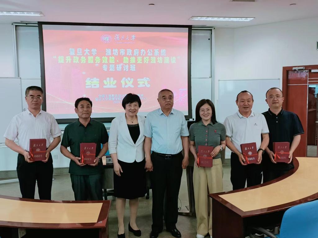5月19日至23日,市政府办公室(研究室)、市委组织部联合组织的“提升政务服务效能、助推更好潍坊建设”专题研讨班在全国干部教育培训复旦大学基地举办。市政府党组成员、秘书长张志海出席开班式并讲话,各县市区政府办公室、市属各开发区党政办有关负责同志参加。