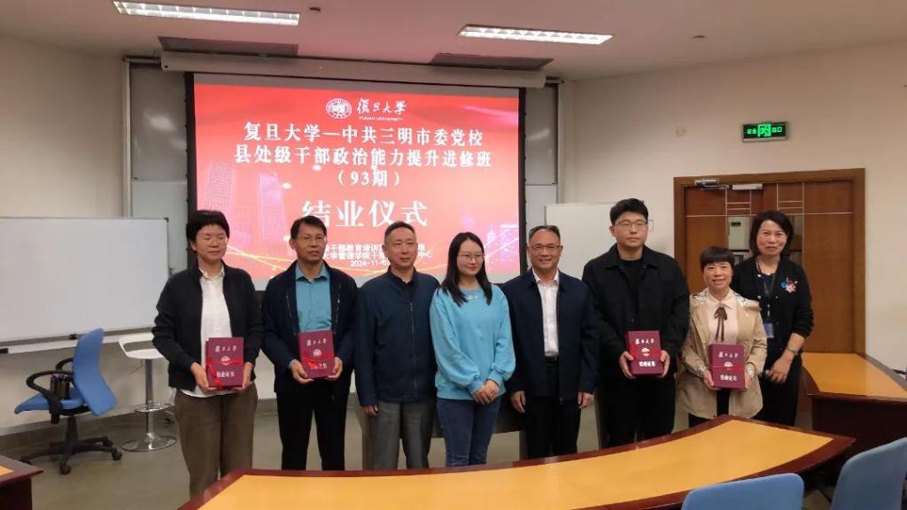 2024年11月4日至7日,三明市委党校第93期县处级干部政治能力提升进修班在复旦大学开展异地教学活动。4天的时间里,通过专题学习、现场教学和交流探讨等形式,学员们在求学求索中叩问真理、知行合一中赋能强基,在交流碰撞中启迪思想,实现了知识与实践的深度融合,为推进三明革命老区高质量发展示范区建设注入源头活水和强劲动能。