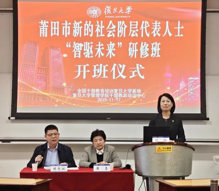 2025年11月17日,莆田市新的社会阶层代表人士“智驱未来”研修班在全国干部教育培训复旦大学基地正式拉开帷幕。本次研修班为期五天(11月17日至21日),由莆田市委统战部指导、复旦大学管理学院干部教育培训中心承办,旨在通过系统化的理论学习与现场实践,深化新阶层人士对党建引领、科技创新与绿色发展的理解,进一步凝聚共识、激发活力。