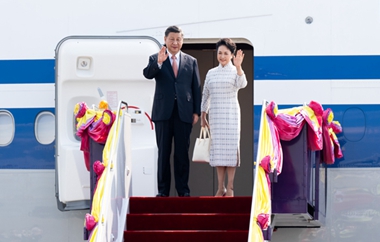 当地时间11月17日下午,国家主席习近平乘专机抵