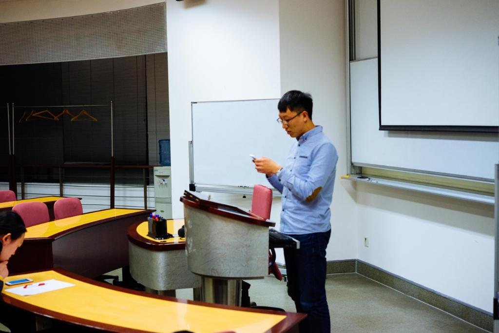在主持人的开场白后,第一位上台分享的是2014级信管专业的连少华。他对同学们事先准备好的问题一一作答。比如:转博考提前多久准备比较合适?转博考题难易程度是如何的?何时选择导师比较合适……连少华耐心细致地回答了这些问题,让大家受益匪浅。随后,几位其它专业的嘉宾一一上台分享了自己的经历和想法。
