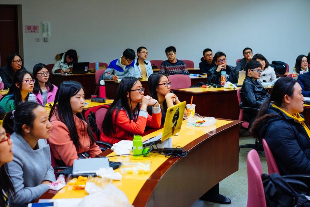 在个人分享环节后,进入更加精彩的分组讨论。在场同学根据专业分组与学长学姐交流讨论,更具针对性和互动性。热烈的讨论持续了近两个小时,很多同学都和学长学姐们交换了联系方式以便今后进一步沟通互动。